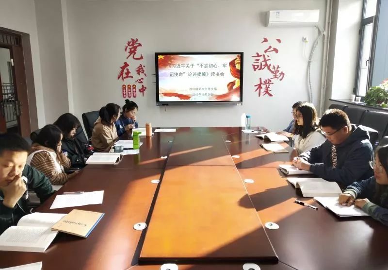 本次专题会通过三个环节来进行:首先,由支部书记王为同志带领大家深入地学习了校党委组织部下发的三篇文章的会议精神。王为同志强调,我们要原原本本读《习近平关于“不忘初心、牢记使命”论述摘编》,学原文,读原著,悟原理,领悟初心使命,增强党的意识,坚定理想信念。紧接着,与会成员就黄文秀同志的先进事迹与支部成员交流了感想,王帆同志认为,黄文秀的精神并没有随着她的生命一同消逝,而是化成值得人们永远铭记的榜样,处于新时代的我们,应坚定信念,信了就不能打折;永怀初心,为民就不能止步;勇于担当,冲锋就不能撤退。张海莉同志表示,学习了黄文秀的先进事迹后,我们深刻感受到应把个人的追求融入到党的理想中,理想才会远大,时刻坚守为人民谋幸福的初心。作为研究生党员,对比自身还有很多缺点和不足,应学习黄文秀同志的精神,在实践中锻炼和完善自己。