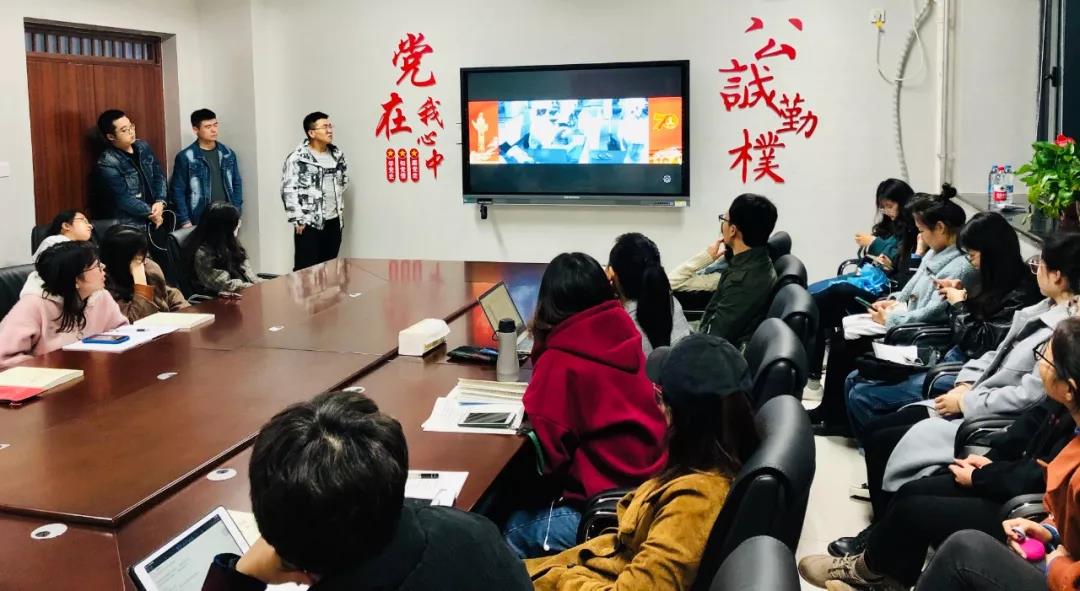 首先,支部书记赵凯凯同志带领大家学习《中国共产党第十九届中央委员会第四次全体会议公报》、《中共中央关于坚持和完善中国特色社会主义制度 推进国家治理体系和治理能力现代化若干重大问题的决定》,并进行发言,他说到这次会议成果决定将“坚持和完善党的领导制度体系,提高党科学执政、民主执政、依法执政水平”排在第一位,充分彰显了党的领导制度体系在中国特色社会主义制度体系中的重要地位。我们一定要认认真真、仔仔细细学习公报和决定,把握好里面的各项要求,我鼓励大家结合个人专业特点,对决定做出我们自己的解读。