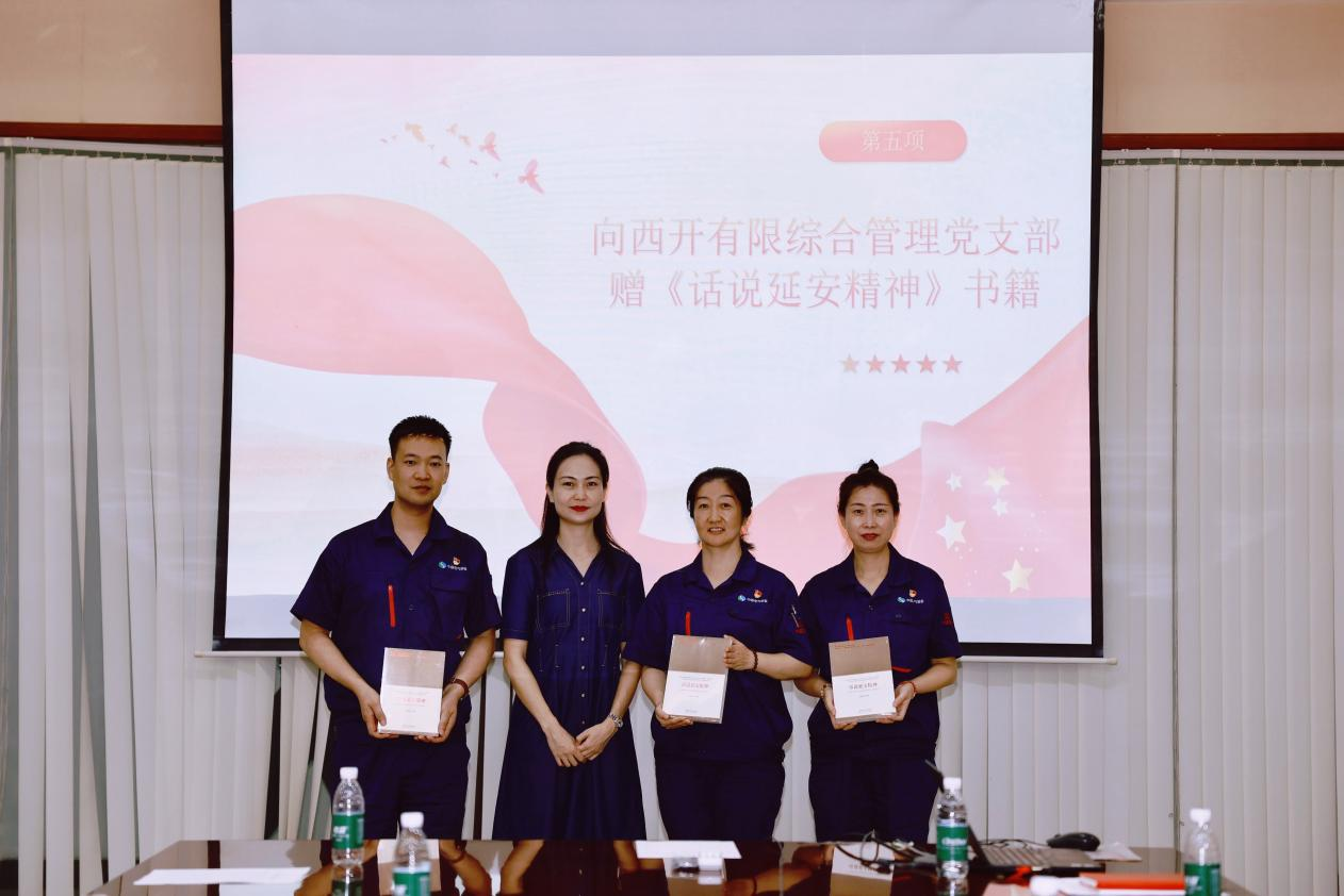 邵平代表我院向西开有限综合管理党支部赠送了《话说延安精神》书籍。