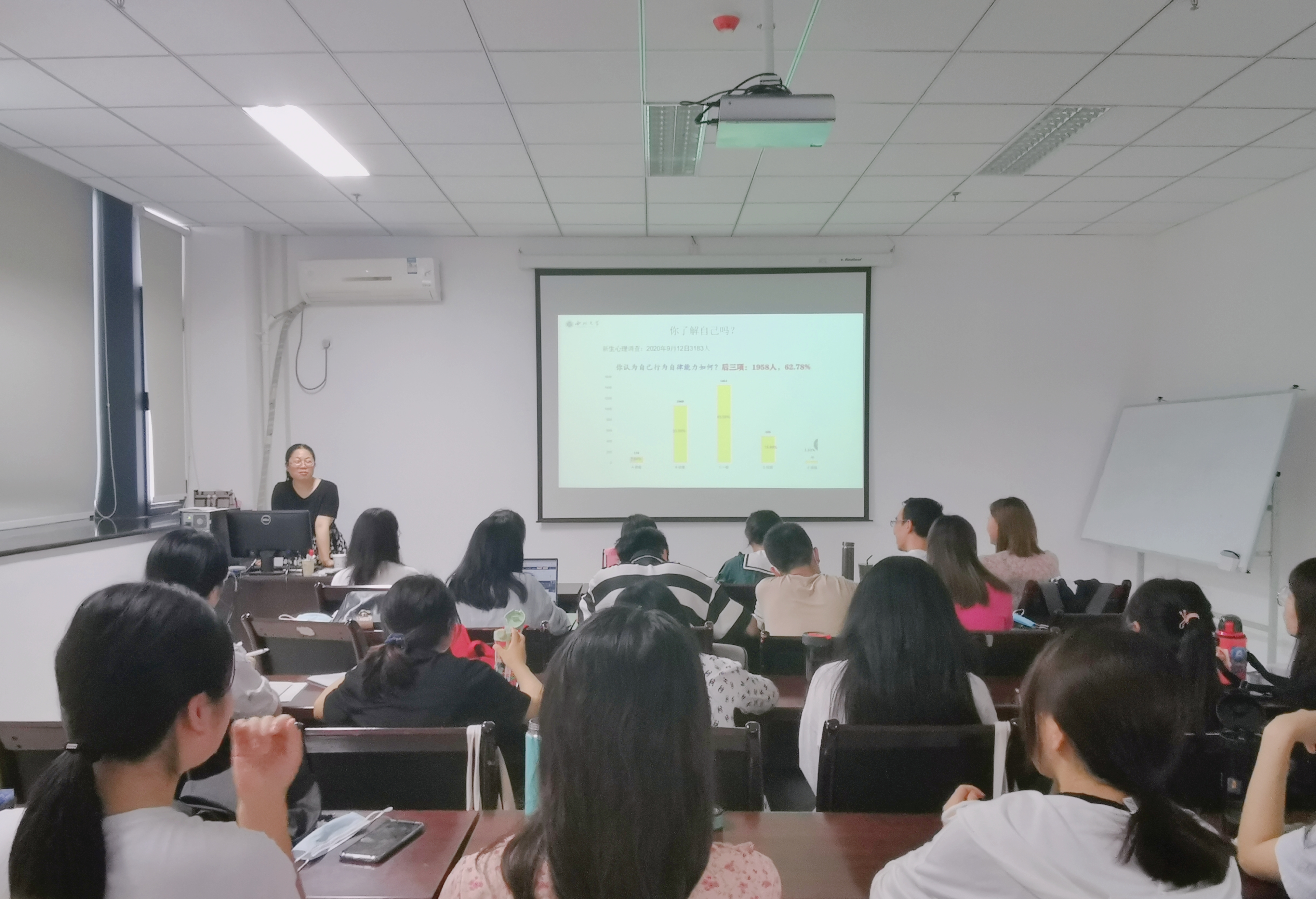 为进一步加强我院研究生心理健康教育,普及心理健康知识,5月25日,我院开展了研究生的压力应对与健康心理专题讲座,本次讲座由西北大学心理健康教育中心李佳副教授主讲,我院部分研究生参加讲座。