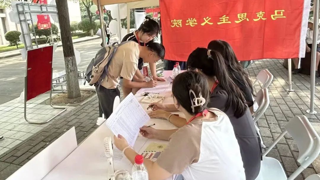 喧嚣的车站中,有一份专属马院的精诚等待。志愿者们手持醒目的迎新牌翘首以盼,期待与新生的目光交汇。确认眼神,志愿者们热情迎去,接过沉甸甸的行李箱也接过一份信任与责任,指引并带领新生和家长前往直达学校的车辆。热情洋溢的身影在熙熙攘攘的车站成为一道道靓丽的风景线。