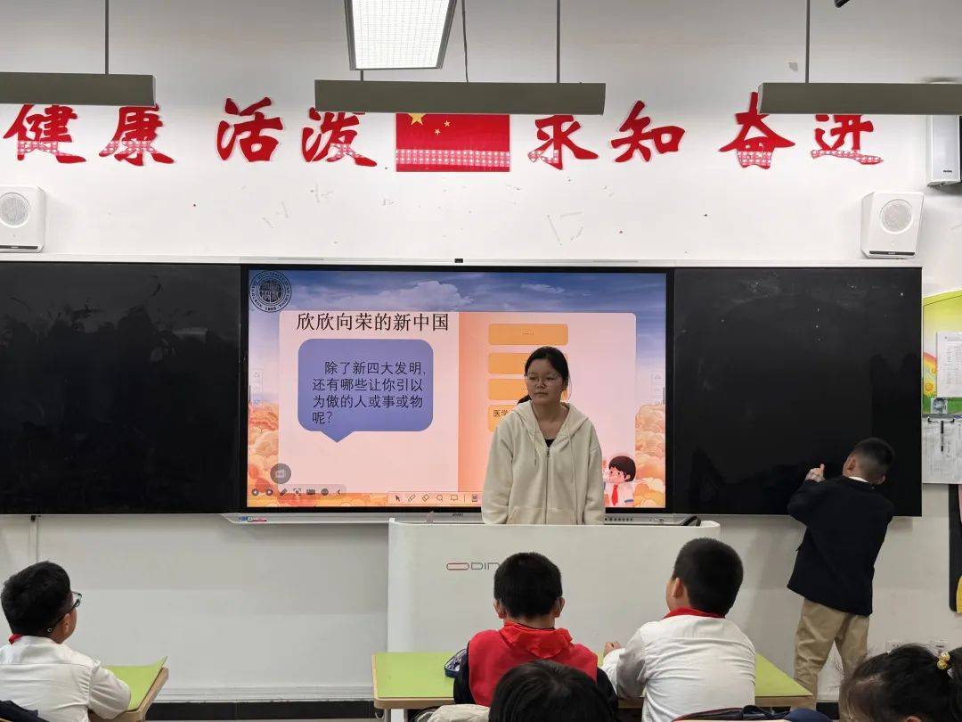 杨姣以《我爱你中国》为题,深入讲解国旗、国徽、国歌的历史底蕴与精神内涵,强调爱国主义不仅体现在对祖国山河的热爱,更要落实在日常生活实践中。