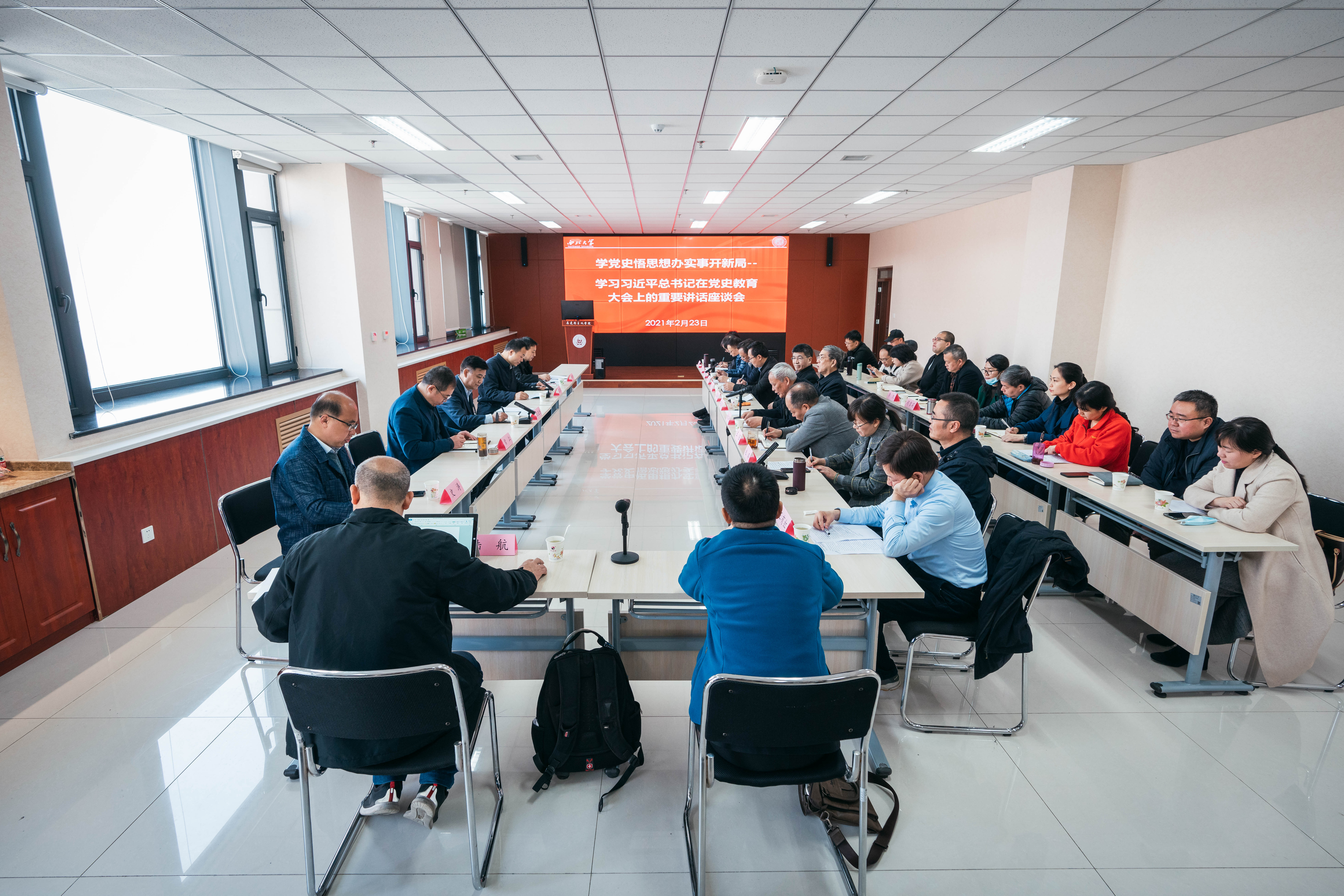 2月23日上午,学校在长安校区召开“学党史 悟思想 办实事 开新局——学习习近平总书记在党史学习教育动员大会上的重要讲话”座谈会。校党委书记王亚杰,校党委常委、副校长常江,宣传部、社科处负责人及马克思主义学院党政班子成员、思政课教师参加座谈,会议由校党委副书记、马克思主义学院院长吕建荣主持。