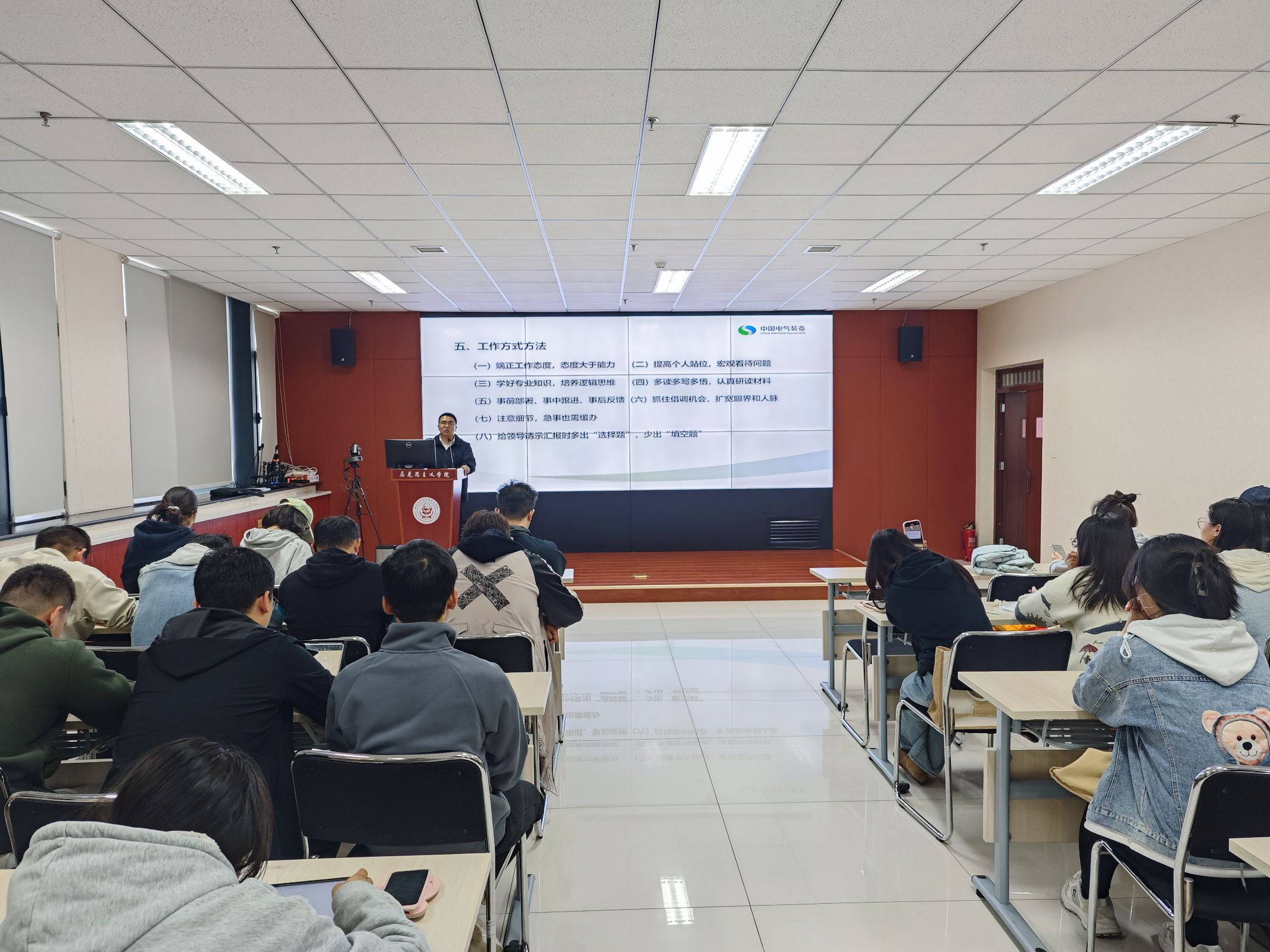 10月29日下午,中国西电集团、中国西电监督执纪室纪检专责、我院2022届优秀毕业生蔡浩毅做客“终南思政讲坛”,为我院研究生作了题为《高质量开展企业党建的方式方法》的就业指导专题讲座,讲座由我院党务工作人员主持。